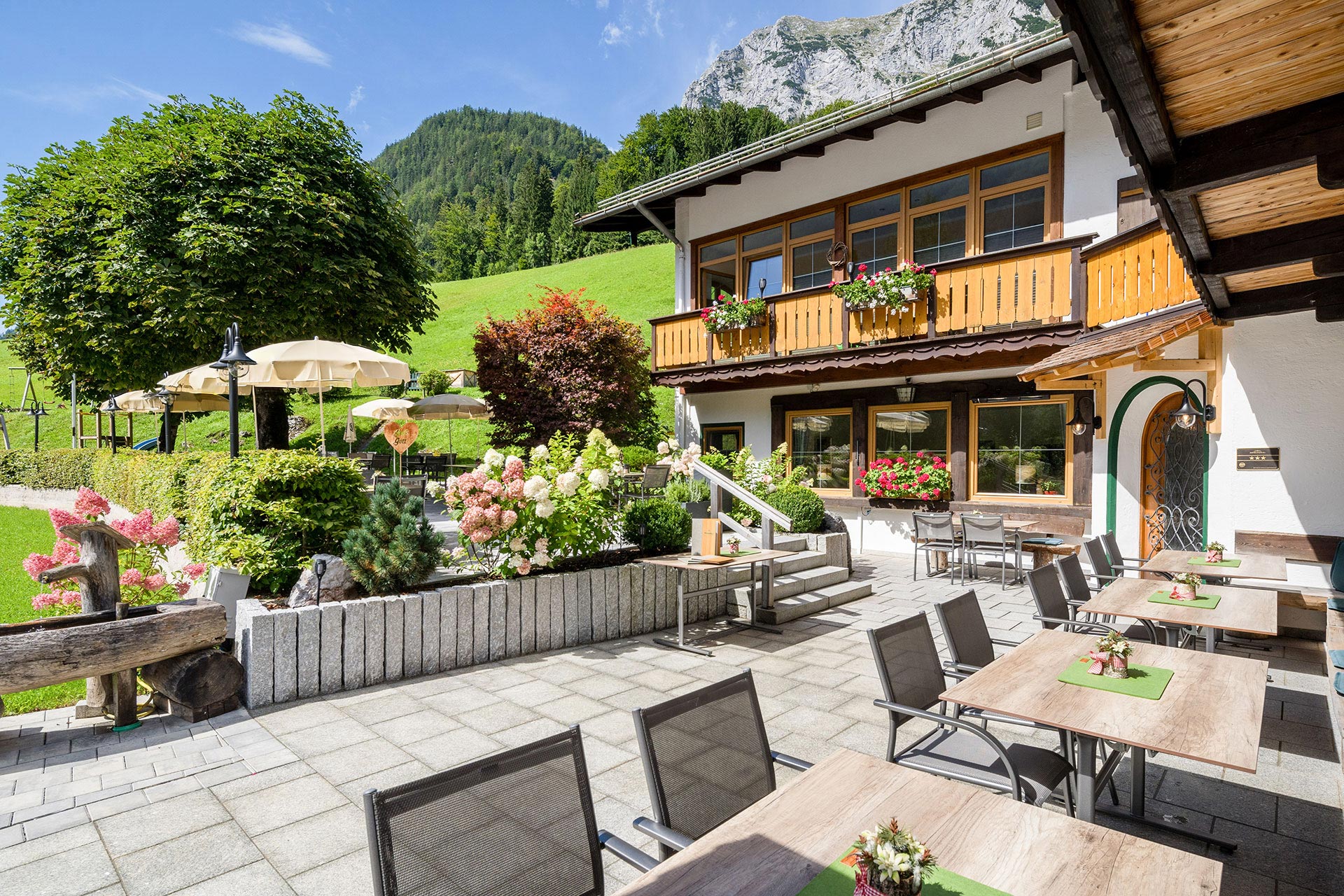 On the chestnut terrace or in the cozy restaurant of our hotel in Ramsau-Hintersee, you can end the day with a delicious dinner from our Bavarian-Styrian cuisine, accompanied by a glass of wine from our small but fine wine list and a fine brandy.